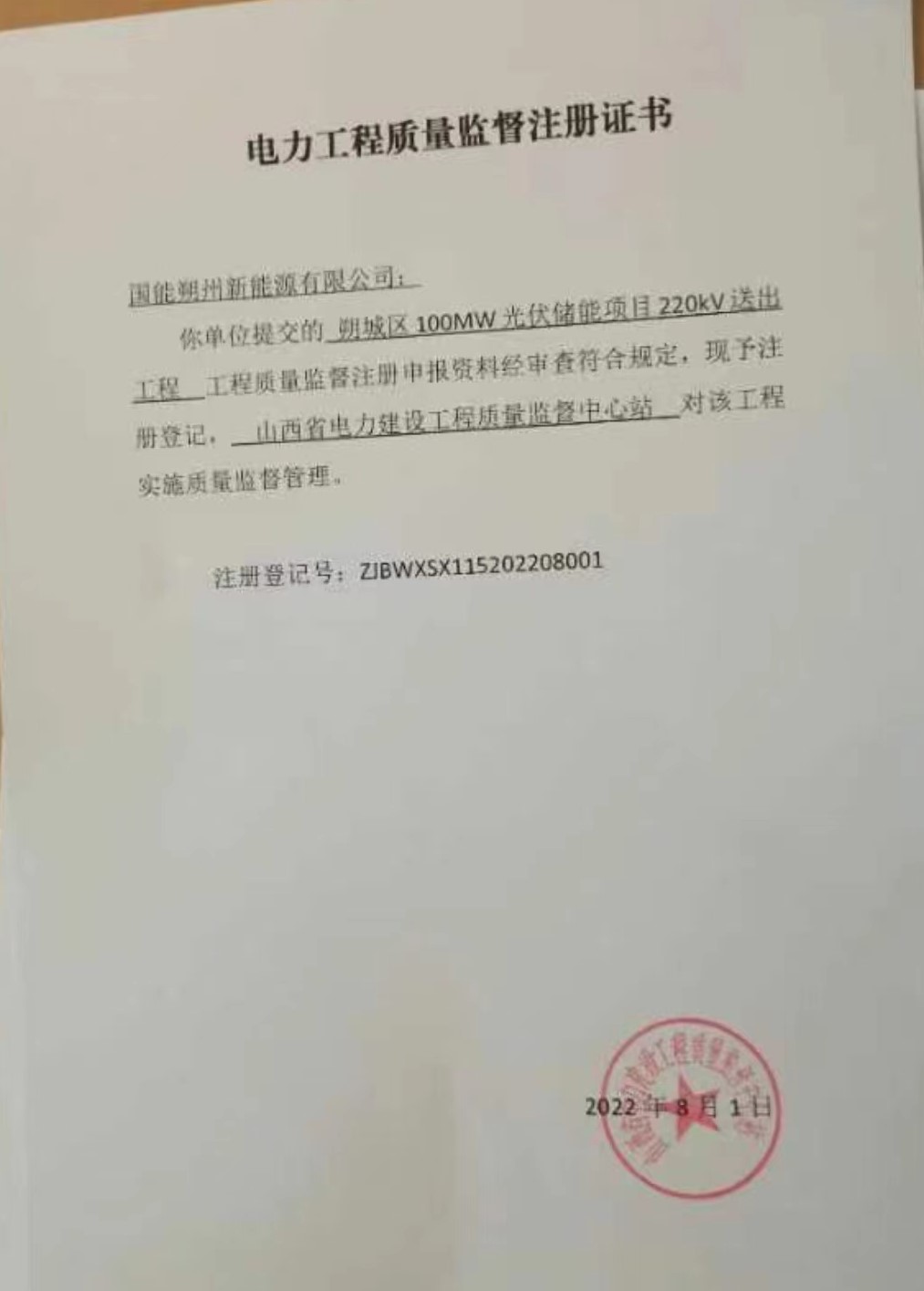 关于受理山西365在线体育_365bet线路检测_365bet足球投注网站100MW光伏储能项目质量监督工作的通知